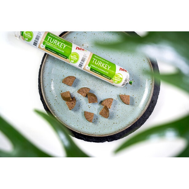 NatureCare Turkey is een volledige graanvrije vleesvoeding en bijzonder geschikt als gezonde variatie op de droogvoeding. De met zorg geselecteerde ingrediënten dragen bij aan een gezonde huid en glanzende vacht en ondersteunen een evenwichtige darmflora. Deze voeding bevat kalkoen als enige dierlijke eiwitbron, wat de kans op een overgevoeligheidsreactie vermindert. Deze voeding is ook geschikt als verantwoorde beloning tijdens training.
