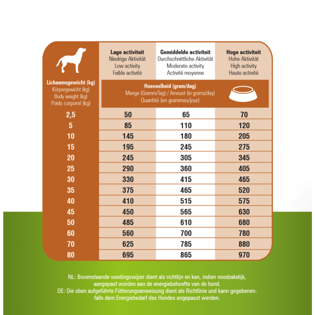 ANALYTISCHE BESTANDDELEN: Vocht 9.0%, Ruw eiwit 24%, Ruw vet 12%, Ruwe as 7.0%, Ruwe celstof 2.5%.